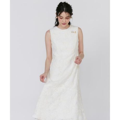 繊細なレースと高級感のある3Dレースの刺繍が織りなすノースリーブワンピース。スカート部分には切り替えを入れ、緩やかなマーメイドシルエットで女性らしい華やかさを演出します。ベースには柔らかな手触りが特徴の繊細な花柄レースを使用。このレースの上に透け感のあるチュールで立体的な花柄を刺繍することで、上品な華やかさをプラスしました。さらに光沢のある裏地を合わせることで、より高級感のある仕上がりにしました。ジャケットやデニムブルゾンを羽織ればカジュアルなスタイリングも楽しめます。オケージョンにはカーディガンやボレロを合わせれば、よりフォーマルな装いにも対応できます。・裏地あり・後ろファスナーあり■サンプル撮影商品■こちらの商品はサンプルでの撮影となっております。実際の商品とは、サイズや色味、素材、デザイン等の仕様が若干変更になる場合がございます。