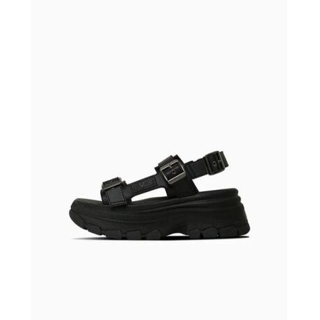 アッパーにはシンセティックレザーやメタルのバックルを取り入れた、ファッショナブルなデザインがポイント。