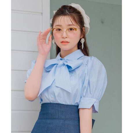 ミニスカートからロングスカートまで、合わせるアイテムを問わない王道フェミニンブラウス【Design】・ふんわりとふくらませたパフスリーブと、存在感のあるリボンタイがフェミニンムードを高める半袖シャツブラウス。・細めのストライプ柄は表情感がありつつもコーディネート綺麗見せしてくれます♪・胸元にWILLSELECTIONの刺繍が施すことで特別な一着に仕上げました。・リボンタイは取り外し可能なので、気分に合わせてアレンジいただけます!・マーメイドラインのロングスカートを合わせれば大人フェミニンに、フレアのミニスカートを合わせれば甘めなガーリースタイルに◎・フロントボタン仕様。【Fabic】・軽くて薄い、夏まで着られる薄手の生地を使用。・ご自宅でお手入れが出来るのも嬉しいポイント♪・ホワイト、ホワイトストライプ、ブルーストライプの3色展開となります。【Care】洗濯機洗い可能