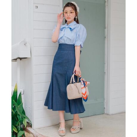 裾に向かって左右にフレアが広がるハイウエストフレアスカート【Design】・シーズンやトレンドに左右されないベーシックなロングフレアスカート。・後ろは大きなリボンデザインになっており、シンプルなデザインにフェミニンなエッセンスをプラス!・中心から左右に広がるようなフレアシルエットになっています。・ウエスト切り替えのないハイウエストデザインでスッキリとした印象に。・トップスはウエストインしていただくと、より美しいハイウエストラインを見せてくれます。・後ろはゴム&ファスナー仕様。・後ろリボンの結び具合でウエストのサイズをご調整いただけます。【Fabic】・軽い着心地の生地を使用。・ネイビーはコットン生地を使用。・ベージュ、ピンク、ネイビーの3色展開となります。【Care】ドライクリーニング