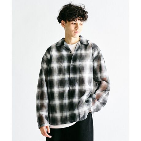 日本の伝統的な蚊帳素材を使用したメッシュシャツをベースに、オンブレチェックのパターンをプリント。