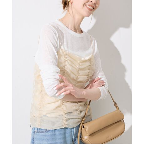 ・コーディネートの主役に!繊細なシャーリングデザインが目を惹くキャミソール。