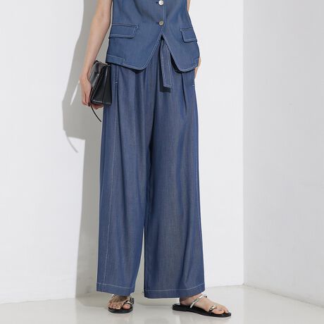 テンセルデニムの軽やかな風合いが魅力のワイドパンツ。