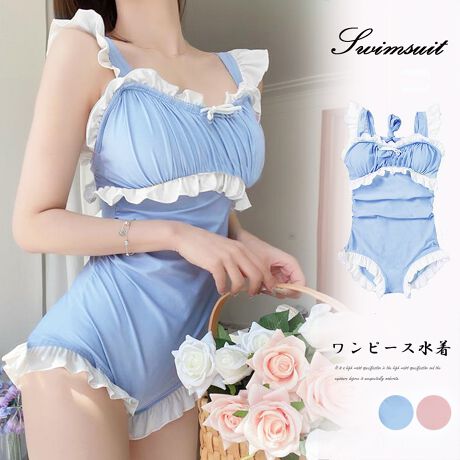 今年トレンド感満載のフリル仕様の韓国風モノキニワンピース水着