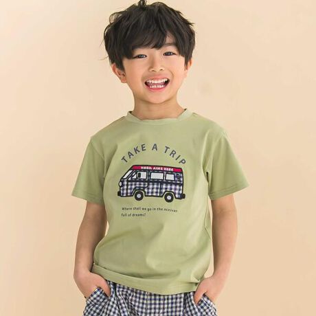 天竺クルマパッチ刺しゅう半袖Tシャツ(80~130cm)