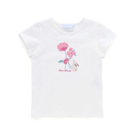 フロント部分にプリントされたお花とウサギがとても可愛い女の子用Tシャツ。