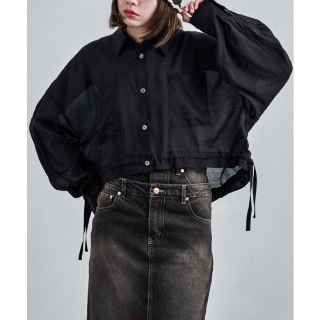 Fashion Letter ファッションレター 定番のシアーシャツはクロップド丈と裾のドローコードで旬のデザインをプラス。