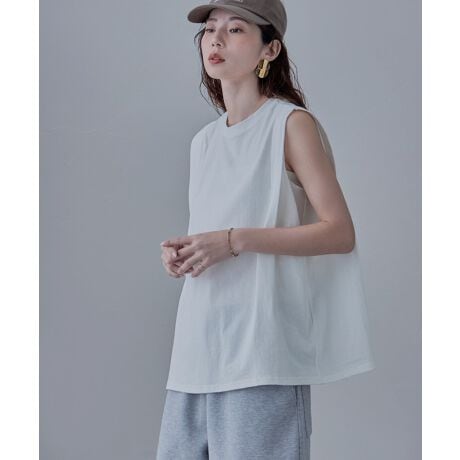 etoll. エトル 立体的なタックデザインが様になるスリーブレスTシャツ。
