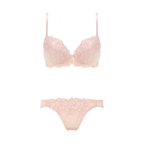 大人キュートなエンブロイダリーレースとライトな編みレースを合わせたブラジャー。