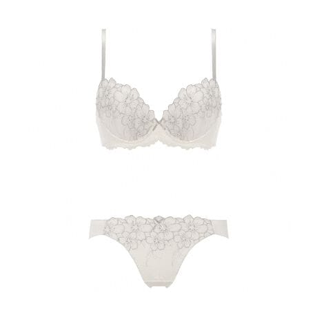 大人キュートなエンブロイダリーレースとライトな編みレースを合わせたブラジャー。