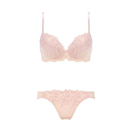 大人キュートなエンブロイダリーレースとライトな編みレースを合わせたブラジャー。