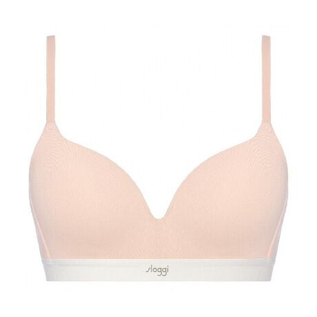 左右一体型のクッションカップがバストを支え、ノンワイヤーでも美しいシルエットをキープします。