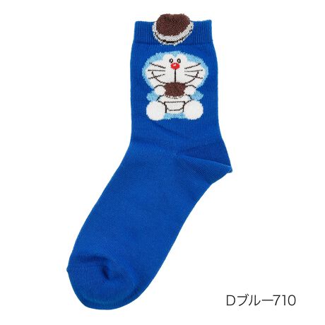 大人気「ドラえもん」の部分ブークレー素材のクルー丈ソックスの登場です。どら焼きを持っているドラえもんがかわいいデザインです。お家でもお外でも、いつでもお気に入りのキャラクターを楽しむことができます。