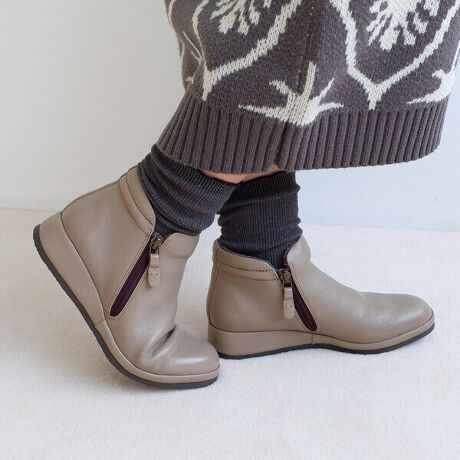 サイドのファスナーがお洒落な足元を演出するショートブーツです。