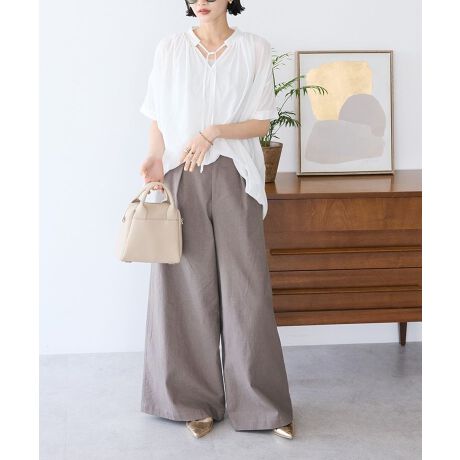 *肌触りの良いコットンリネン素材を使用した、着回し力抜群のワイドパンツ軽やかなコットンリネン素材を使用し、柔らかい肌触りが魅力のワイドパンツ。