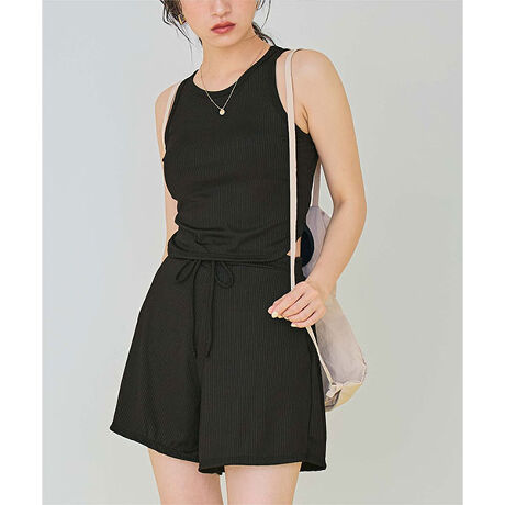 ・ヘルシーなスタイリングを叶えるカップ付きタンクトップ×ハイウエストショーツ×ウエスト紐付きショートパンツの3点セット水着。