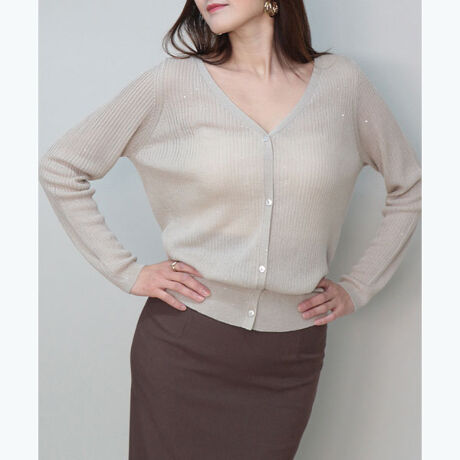 ささやかに散りばめられた小さなスパンコールが上品に輝き、目立ちすぎず、普段のワードローブに馴染みます。持ち運びもしやすく夏の冷房対策にはもちろんTシャツや開襟シャツに肩掛けすればこなれた雰囲気に。