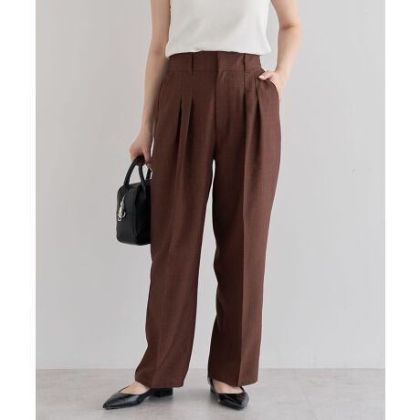 ナチュラルなリネンライク素材で仕立てた2タックパンツ。裾にかけて丸みをもたせたコクーンシルエットが魅力的なデザインです。ウエストバッグゴム仕様のリラクシーな着用感も魅力のポイント。タックが生み出す縦長のラインがスマートに魅せてくれる今季おすすめのアイテムです。透け感[なし]