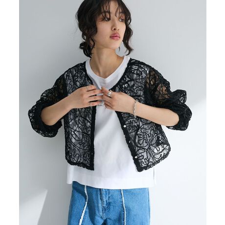 コーディネートに抜け感を演出するコードレースカーディガン。前後で着こなし可能な2WAY仕様で、トップスライクな着こなしもお楽しみいただけます。ふんわりとしたボリュームスリーブが女性らしいデザイン。ゆったり身幅にクロップド丈で一枚オンするだけでトレンド感のあるレイヤードスタイルが決まるおすすめのアイテムです。透け感[あり]
