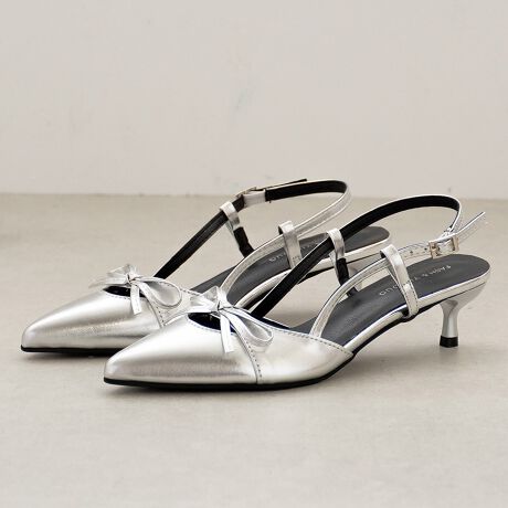 細ストラップリボンミュールパンプス。