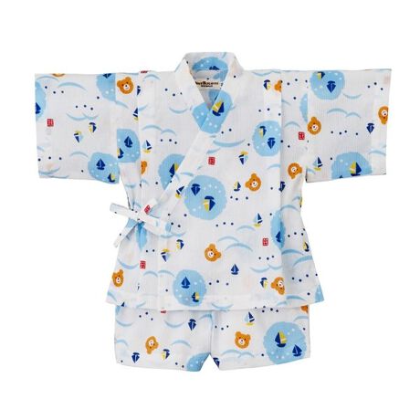 白地にヨットとビーンズくん。夏らしく爽やかデザインの甚平スーツです。