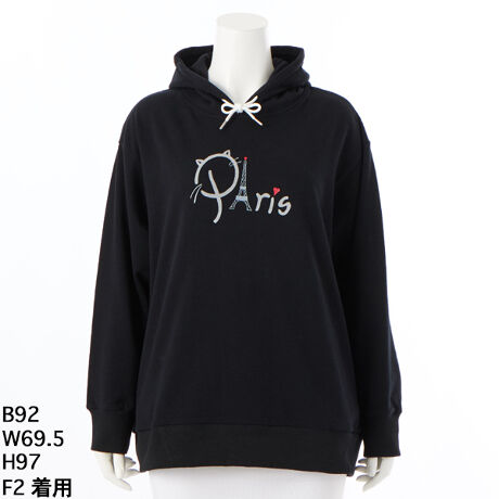 パリをイメージしたキュートなロゴプリントが特徴のこのパーカーは、シンプルながらも印象的なデザインが魅力です。両脇ポケット付きで、実用性も兼ね備えています。程よい厚みのソフトな肌触りの裏毛素材で着心地も良く快適です。