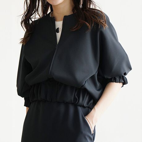 洗える ストレッチ アイロン不要 しわ防止 透け防止 吸水速乾 UVカット なめらか ファスナー クルーネック ドルマンスリーブ 羽織り 紫外線対策