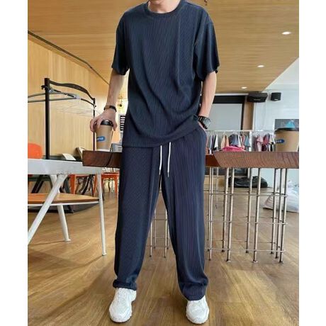 【トレンドのエステルテレコ セットアップ Tシャツ&イージーパンツセット】