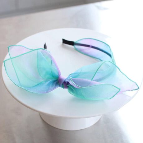 女の子に大人気のビックリボンスエカチューシャの夏Ver.レインボーカラーの登場です♪今日はカチューシャをONしてお出かけしたい気分♪プリンセス派にも、カジュアル派にも、ガーリー派にも...シアーレインボーカラーが夏コーデにアクセントとになる子供服Roraスエレインボーリボンカチューシャです。今っぽい前髪をアップした夏のヘアアレンジも楽しいですね〜