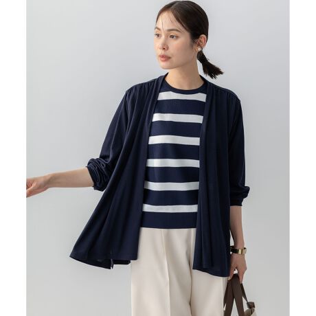 ■デザイン・首の後ろは低めのスタンドネックデザインで日焼け防止に。・襟元から流れる美しいドレープや脇スリットで大人のリラックス感を演出。・袖まくりした際に落ちにくいよう袖口は平ゴムを付けた仕様に。・UVケアから冷房対策まで大人の春夏に欠かせない汎用性の高いカーディガン。