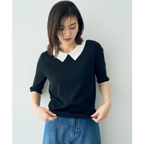 トレンドの襟付きニットにパールを施したプルオーバー。