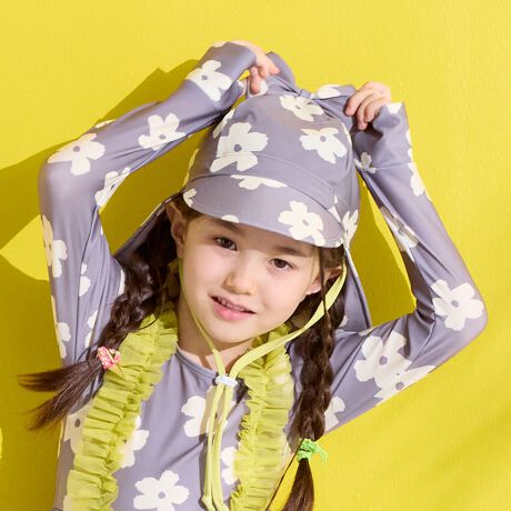 【UVカット/水着】総柄リボンスイムキャップ