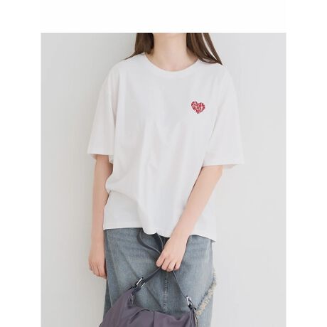 胸元に施されたハートロゴ刺しゅうがキュートなアクセントになるTシャツ