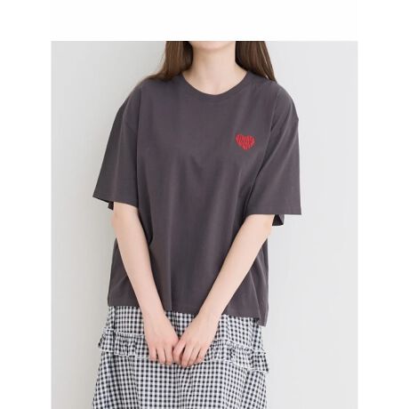 胸元に施されたハートロゴ刺しゅうがキュートなアクセントになるTシャツ