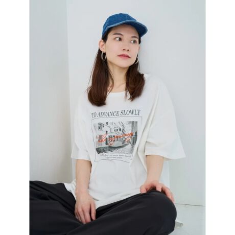 着映えするフォトTeeはそのまま1枚で着ても、ベストやジレを羽織ってロゴをチラ見せしてコーディネートのアクセントにしても◎。