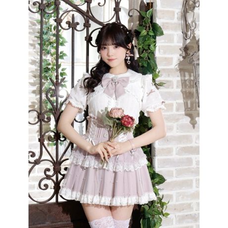 レースの縁取りやハートボタン、大きなリボン飾りに心ときめくデザイン◎