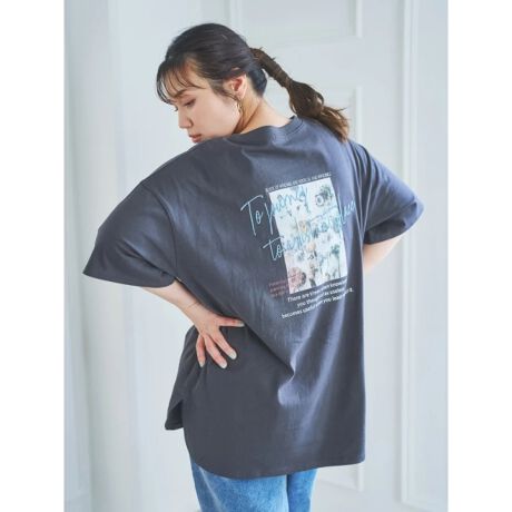 BACKロゴ刺繍×グラフィックプリントTシャツ