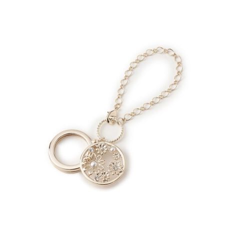 お花モチーフにビジューやフェイクパールが施された華やかなルーペチャームです。