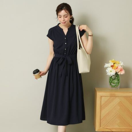 【UVケア/吸水速乾/洗濯機OK/洗濯後しわになりにくい】麻調合繊ワンピース<ラク服シリーズ>