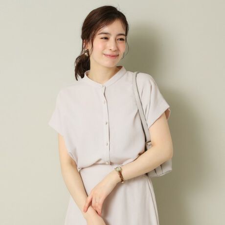 肩のタックデザインが自然な立体感とドレープ感をつくり、二の腕周りをさり気なくカバーしてくれるデザイン。