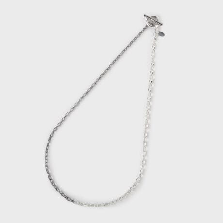 異なる大きさのチェーンを順に組み合わせる事で「サイズのグラデーション」になる様にデザインされたネックレス。