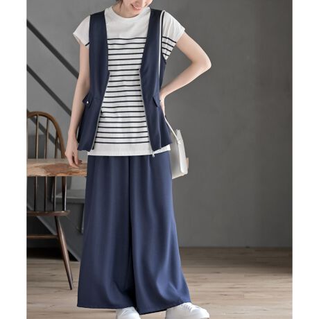簡単コーデときちんと見えが叶うベストとパンツのセットアップ。