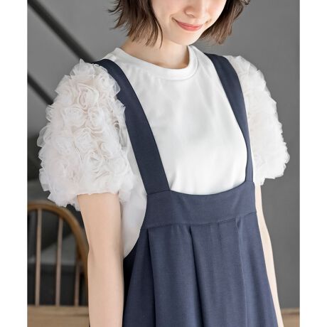 お花の袖がエレガントなレイヤー風トップス