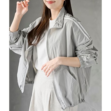 裾のドロストコードでシルエットの変化も楽しめるライトアウター。