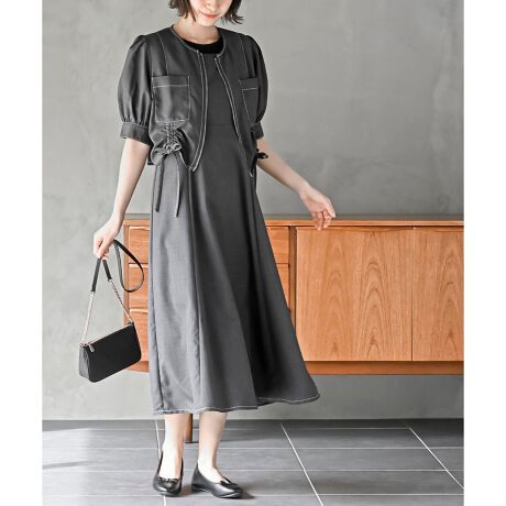 裾のリボンを絞ればシルエットの変化も楽しめます。