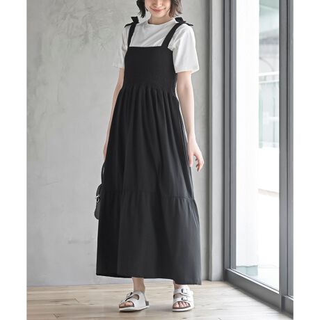 肩リボンスモッキングカットキャミワンピース