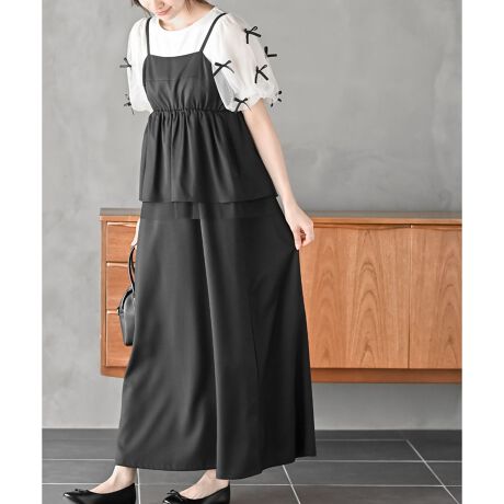 オーバーキャミとスカートのセットアップコーデが楽しめるドッキングワンピ。