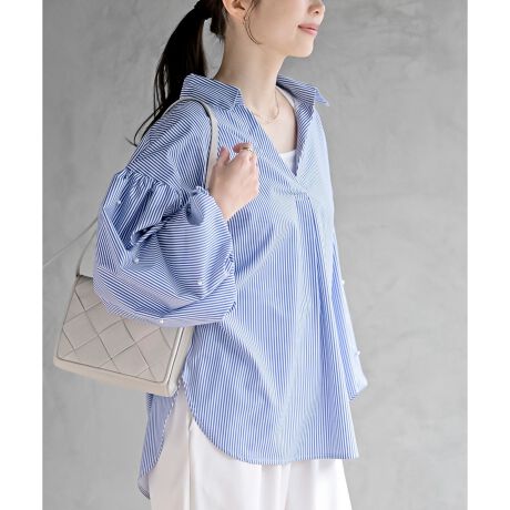 ふっくらボリューミーなバルーン袖がポイントのブラウス。