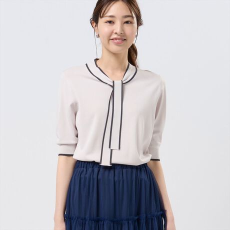 【ドライレーヨン半袖ボウタイプルオーバー】