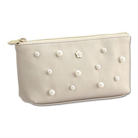 合皮に散りばめた大小のパールが目を引くシリーズ。◆シリーズ共通ポイント・シンプルなデイジー金具が際立つデザイン・デイジー金具の中央にもパールをON・パールは取れにくいカシメ留め・裏地はブラックベースにホワイトデイジー総柄◆カラー展開・ブラック・パールベージュ◆アイテム紹介(舟型ペンケース)・スリムながらマチ付き・コスメポーチやブラシケースにもぴったりのサイズ感内側:ポケット×3[型番:225-862713]